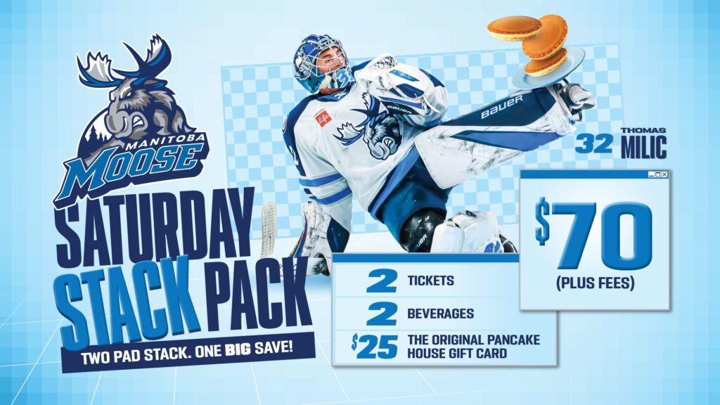 Make your Saturday a win with a pair of Manitoba Moose game tickets, two beverages plus a $25 Original Pancake House gift card.
